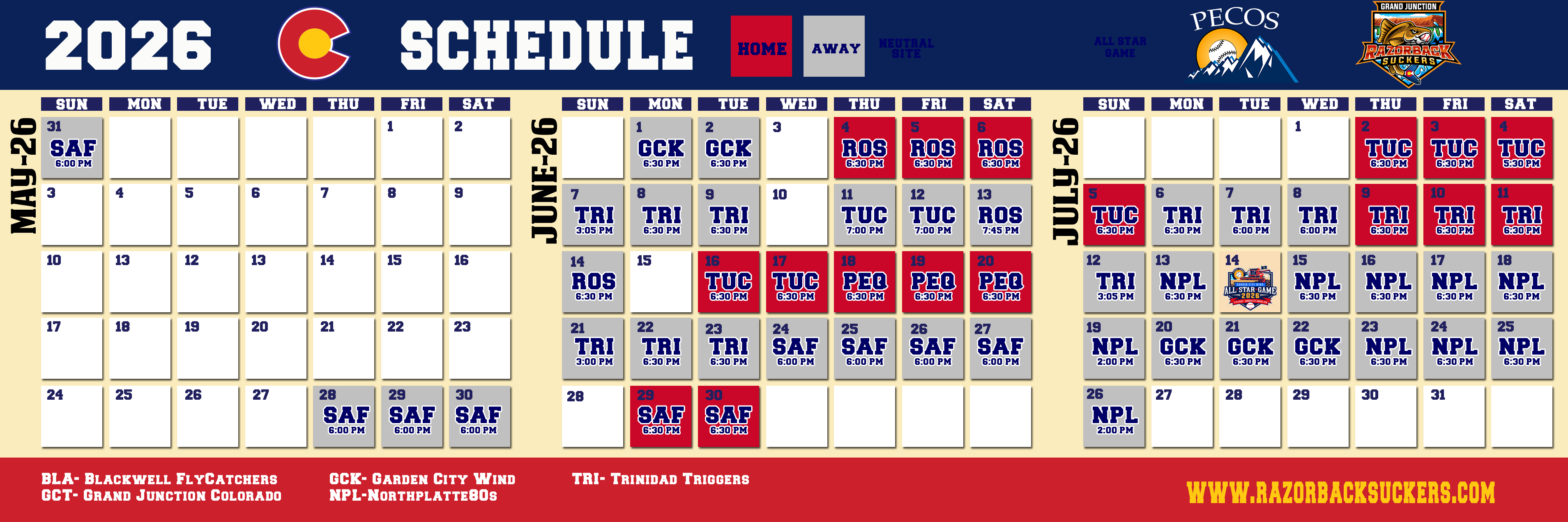 We have many options for Grand Junction Baseball Team Team Sponsorships. Below are the most common options.